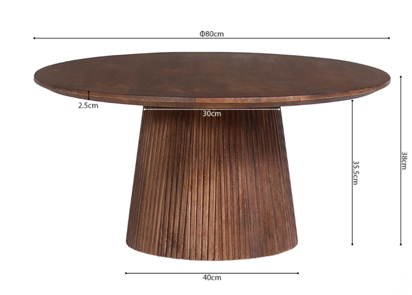 Ontdek de Miguel salontafel. Deze ronde tafel met een diameter van 80 cm biedt volop ruimte voor je dagelijkse benodigdheden. Gemaakt van massief mangohout, heeft deze tafel een elegante uitstraling in lichtbruin en natuurlijk bruin.