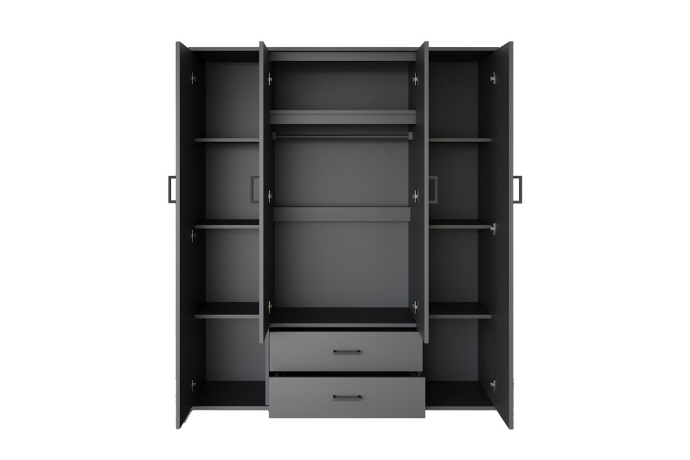 De Marc 4 Deuren Wardrobe is een functionele en stijlvolle kledingkast met vier draaideuren, waarvan er twee spiegels zijn.