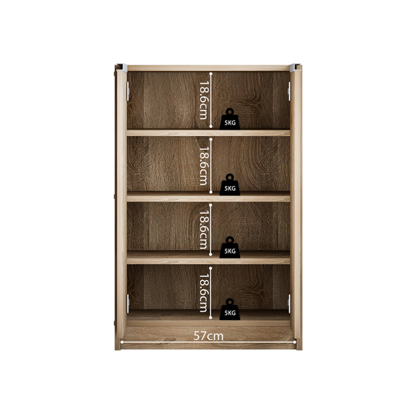 De 'Lilly' schoenenkast 2 deuren Sonoma: spaanplaat en decor | H-H 90 x B-L 60 x D-P 35 cm. Organiseer en berg je schoenen stijlvol op.