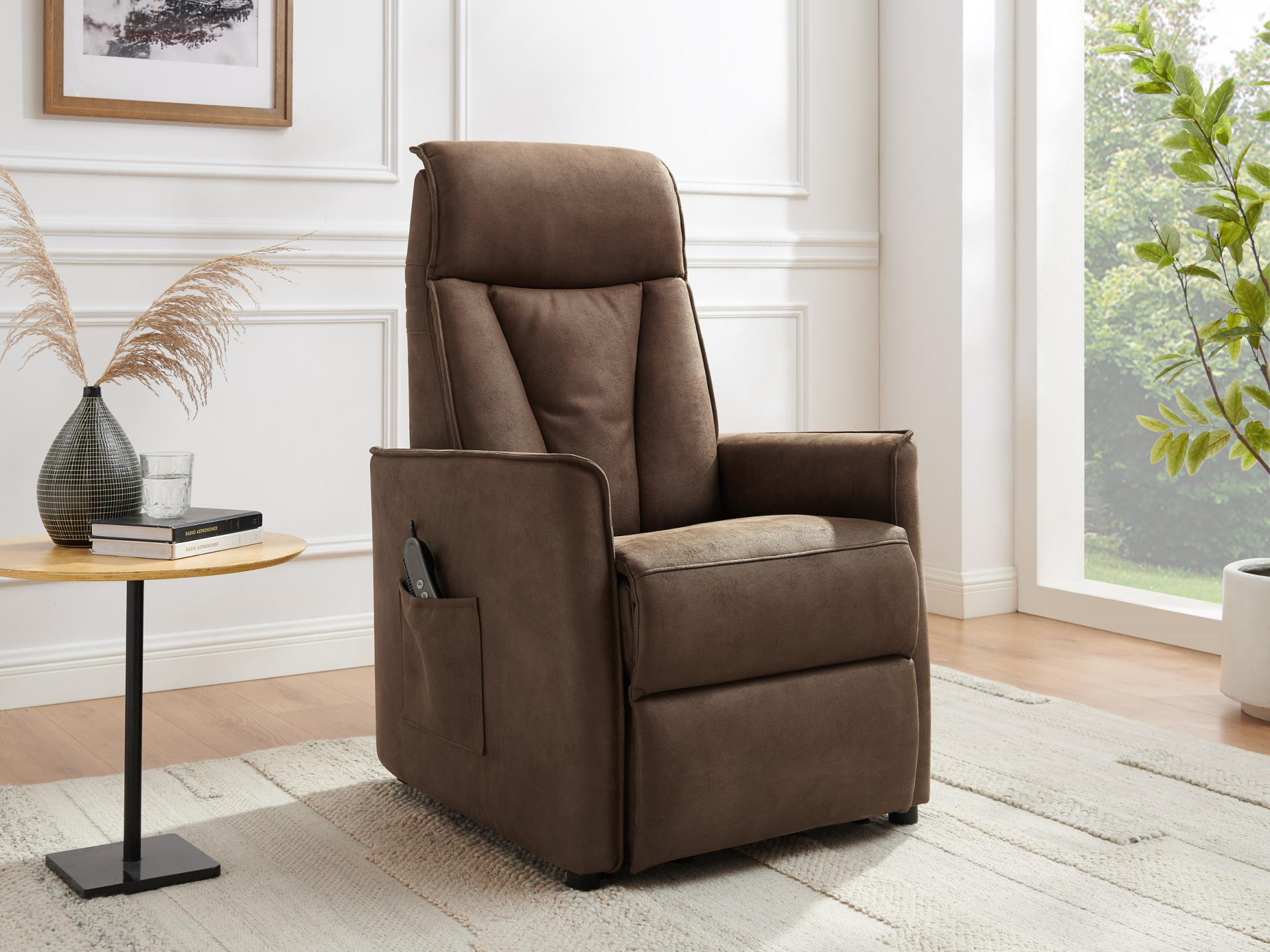 Maak kennis met de Levi fauteuil, gemaakt van luxueuze bruine microvezelstof en biedt een unieke ontspanningservaring. De dubbele motor zorgt voor optimaal comfort, terwijl de verstelbare hoofdsteun je in staat stelt je houding perfect aan te passen.