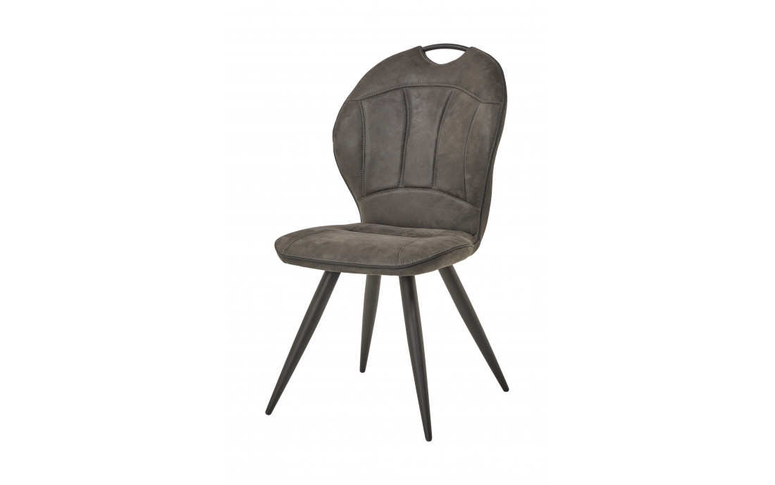 Trendy eetkamerstoel met unieke vormgeving, comfortabele zitting en metalen poten. Past perfect in een modern of industrieel interieur.
