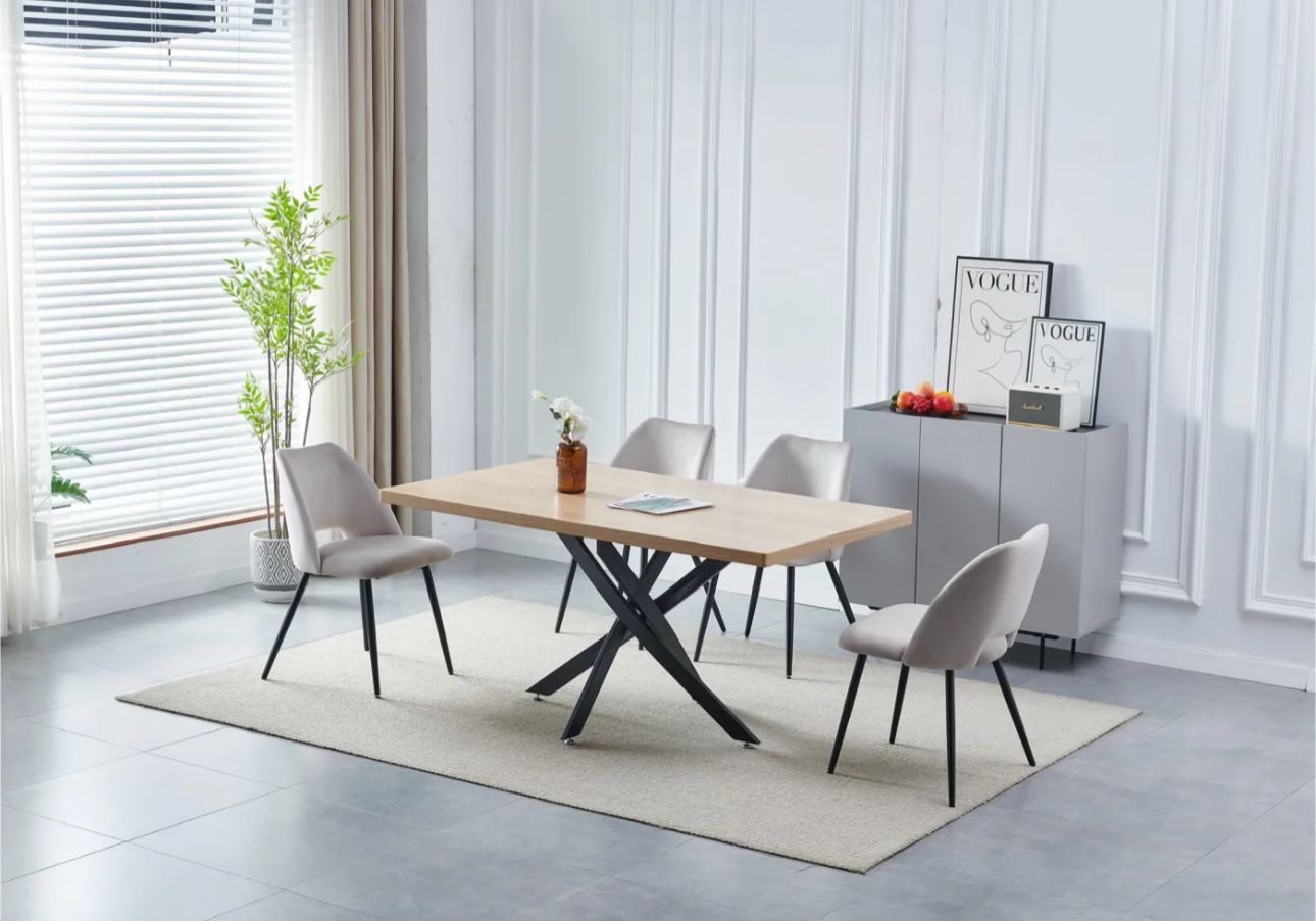 rechthoekige houten eettafel met zilver / zwart poten 180cm.
