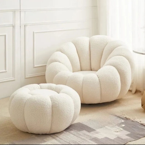Draaifauteuil verkocht met een kleine voetenbank.