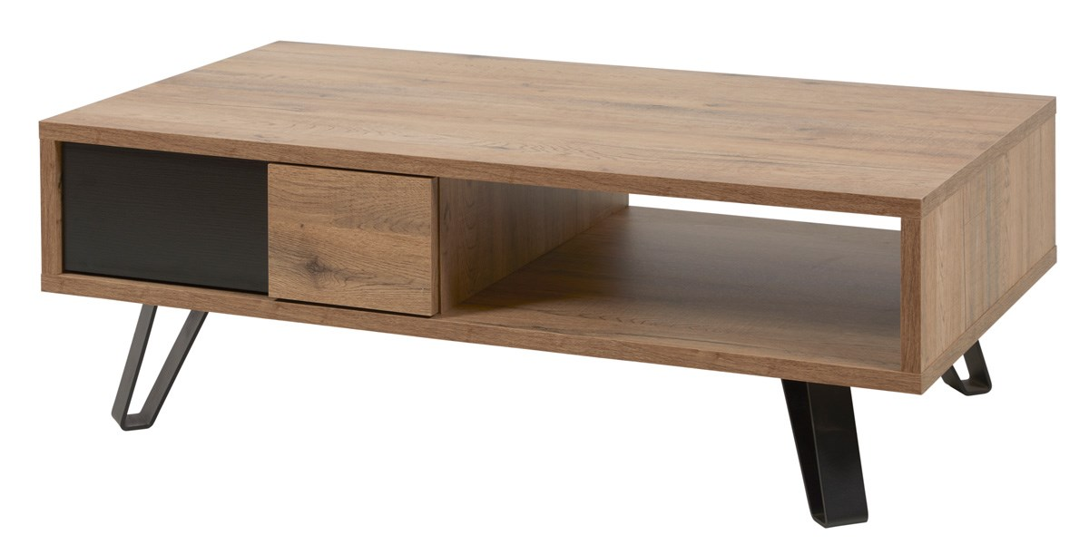 Leuke woonkamer PHENIX met praktische meubelen gerealiseerd in houtdecor scarlet oak. De combinatie van dit hout met het zwart zorgt voor een stijlvol karakter.