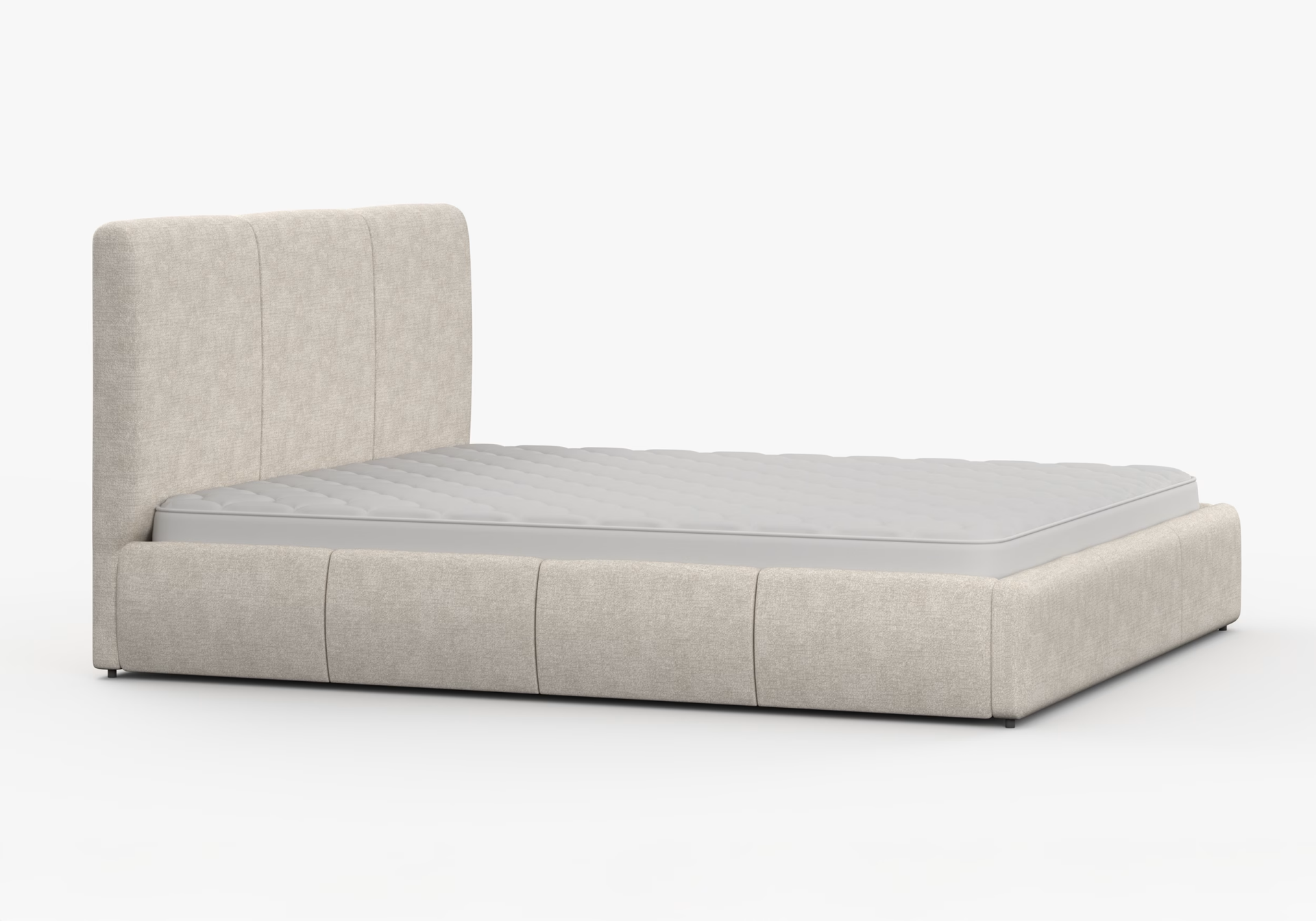 Dit gestoffeerde tweepersoonsbed is 160x200cm breed, heeft zwarte kunststof poten en geen opbergruimte.
