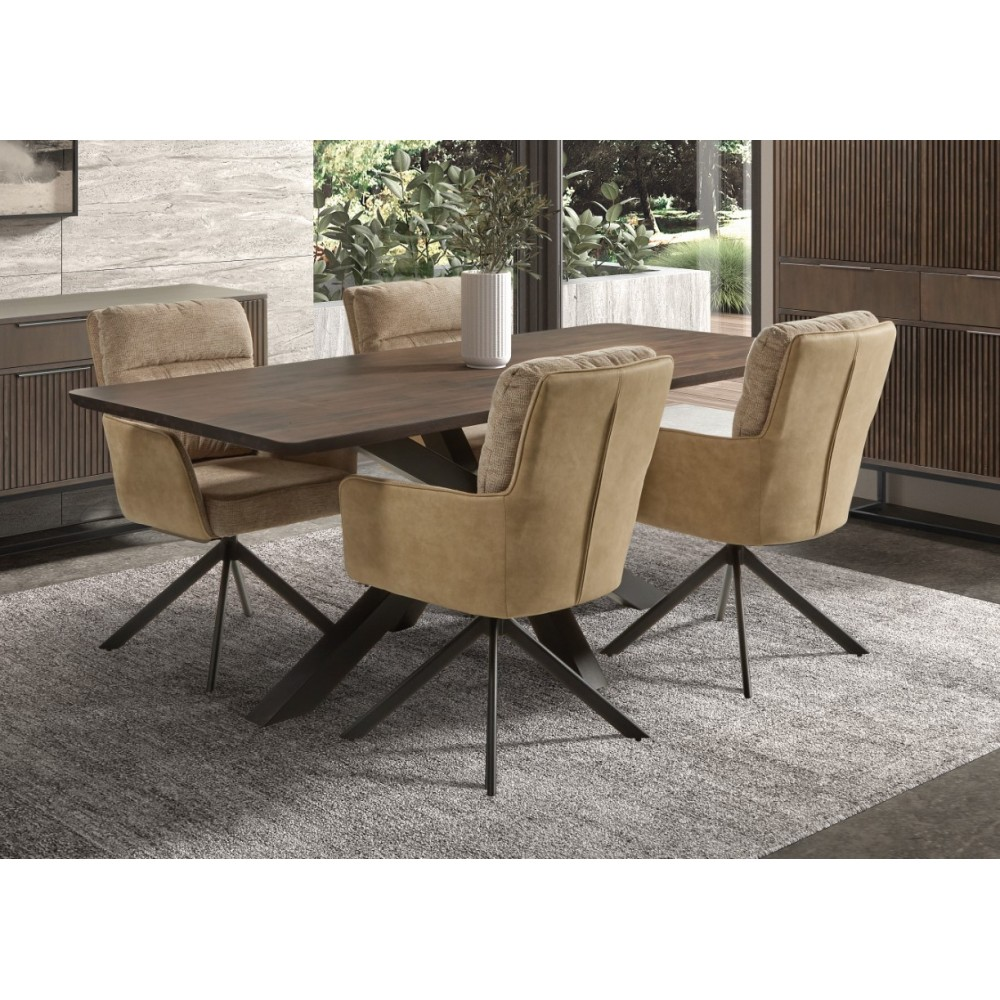 Ontdek deze prachtige eetkamer van acaciahout, compleet met akoestische lambrisering.