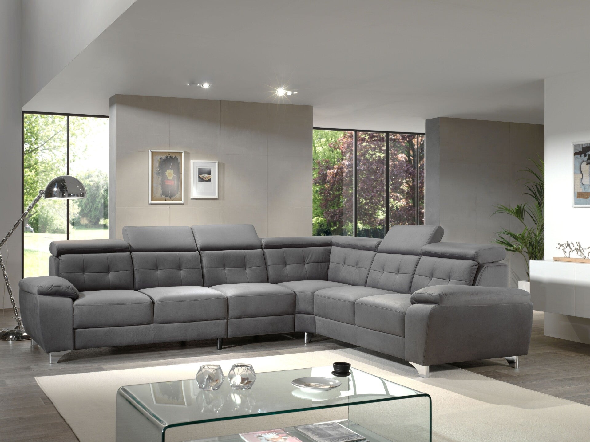 Deze moderne hoekzetel combineert stijl en comfort.