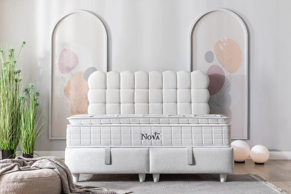 Nova biedt optimaal comfort met ademende stof en een ergonomische topper. Het combineert stijl met functionaliteit door het moderne gecapitonneerde hoofdbord en de hoge poten voor extra schoonmaakgemak.